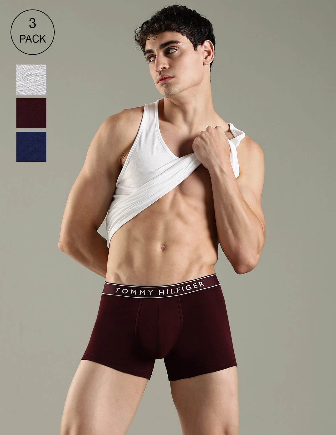 Multi Solid Mid Rise Trunks - Pack Of 3