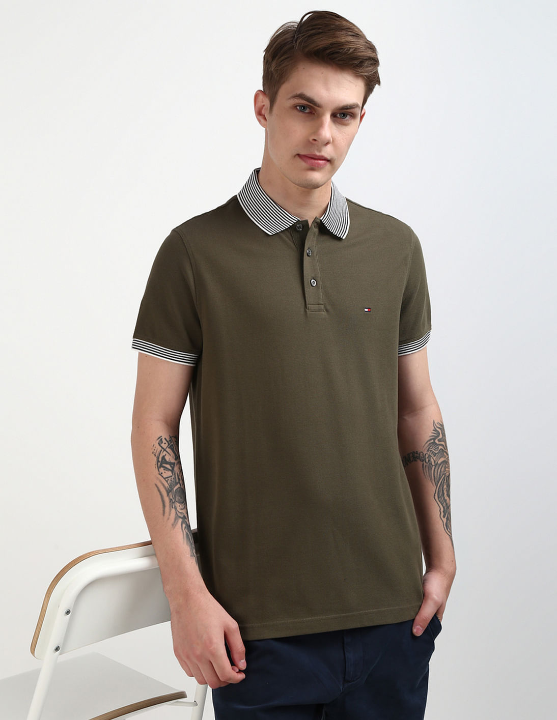 Multi Stripe Collar Regular Polo Shirt