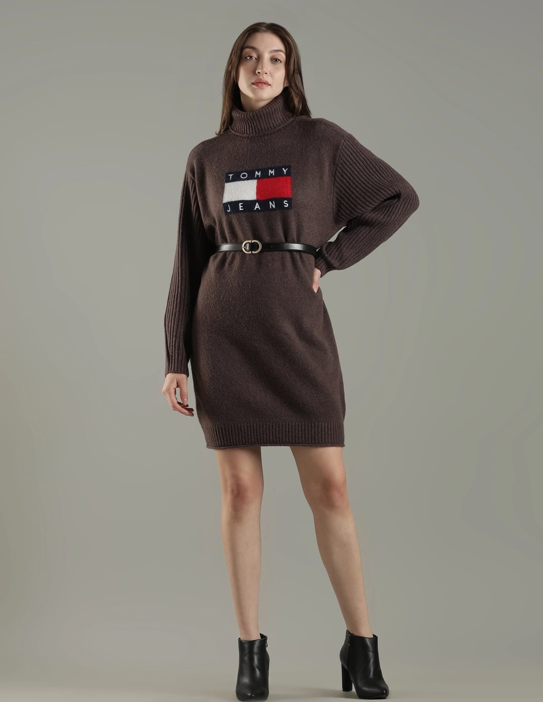 Polyester Turtleneck Sweater Dress