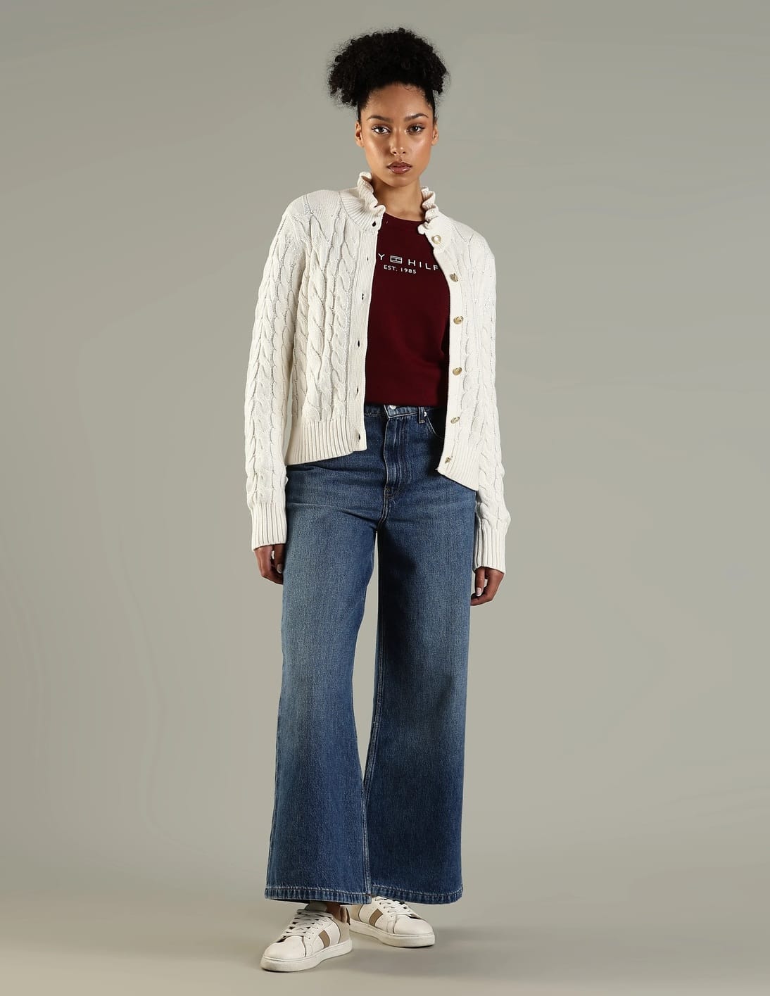 Regular Fit Cotton High-Neck Front-Open Cardigan