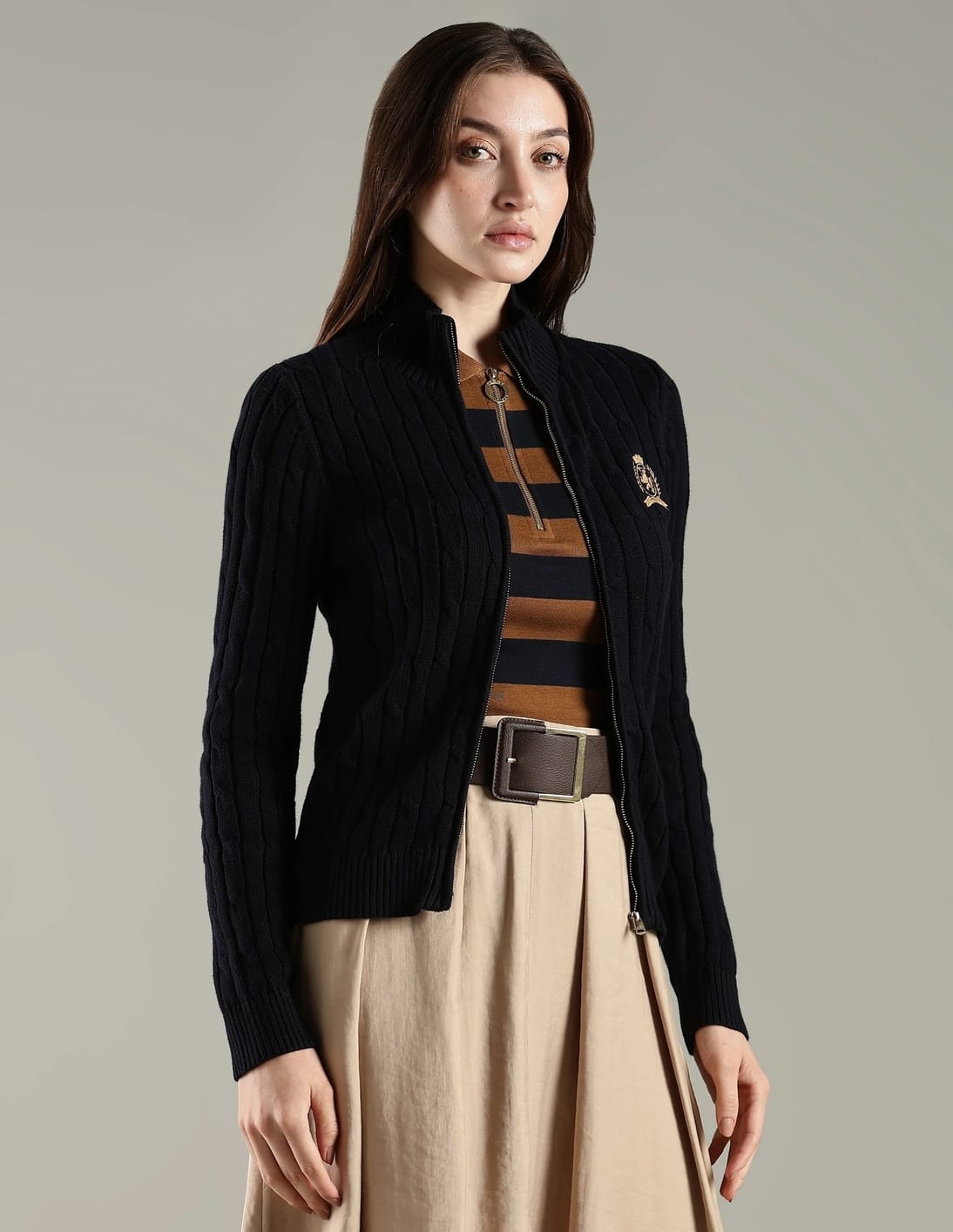Regular Fit Cotton High-Neck Front-Open Sweater