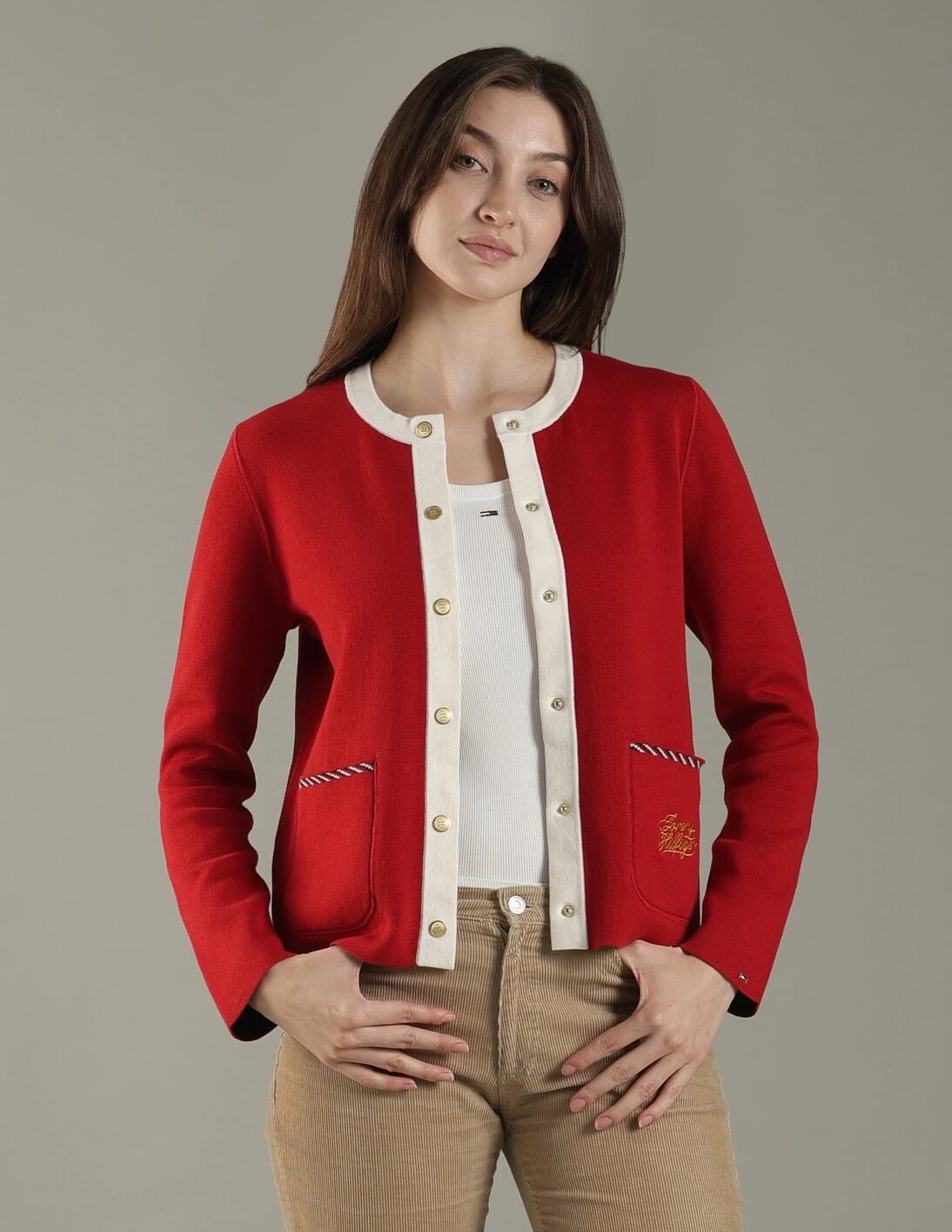 Regular Fit Cotton Round Neck Open-Front Cardigan