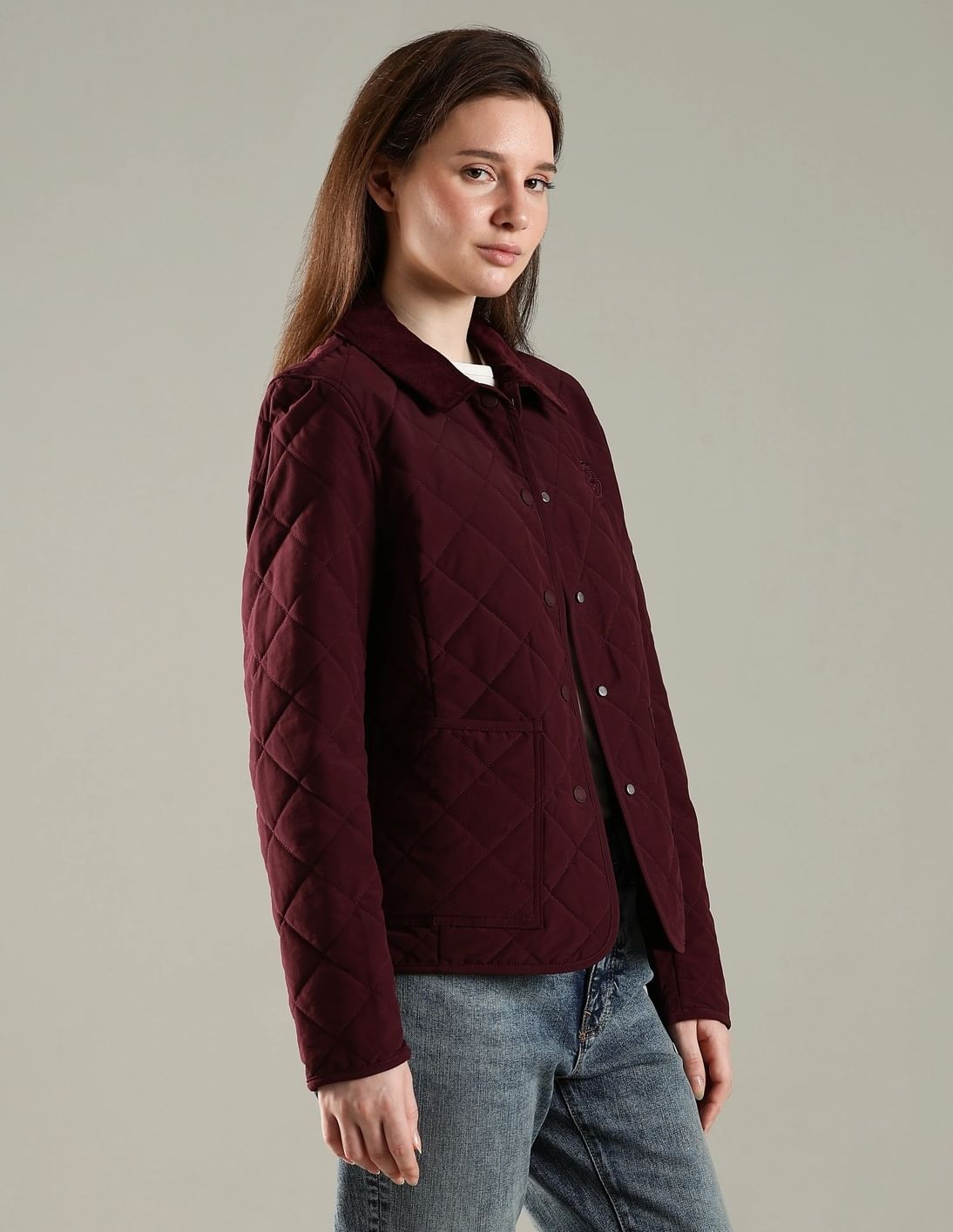 Regular Fit Cotton Spread Collar Quilted Jacket