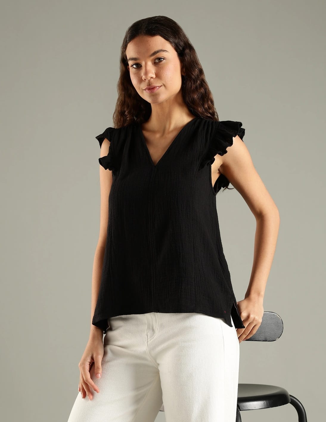 Regular Fit Cotton V-Neck Top