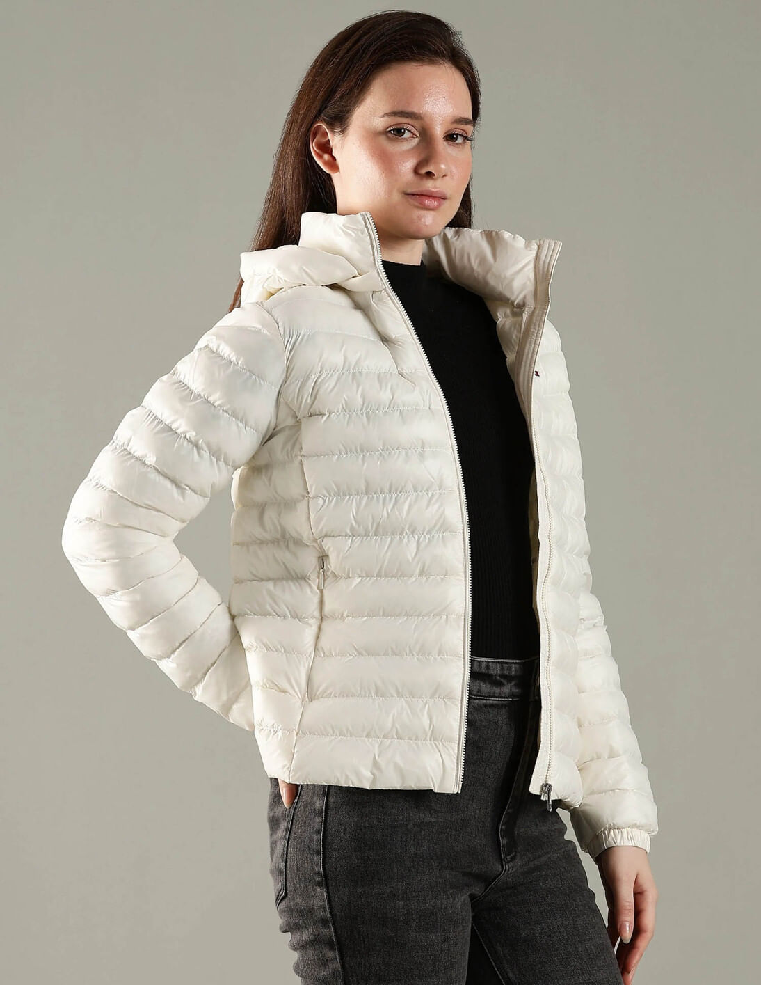 Regular Fit Nylon Hooded Neck Puffer Jacket