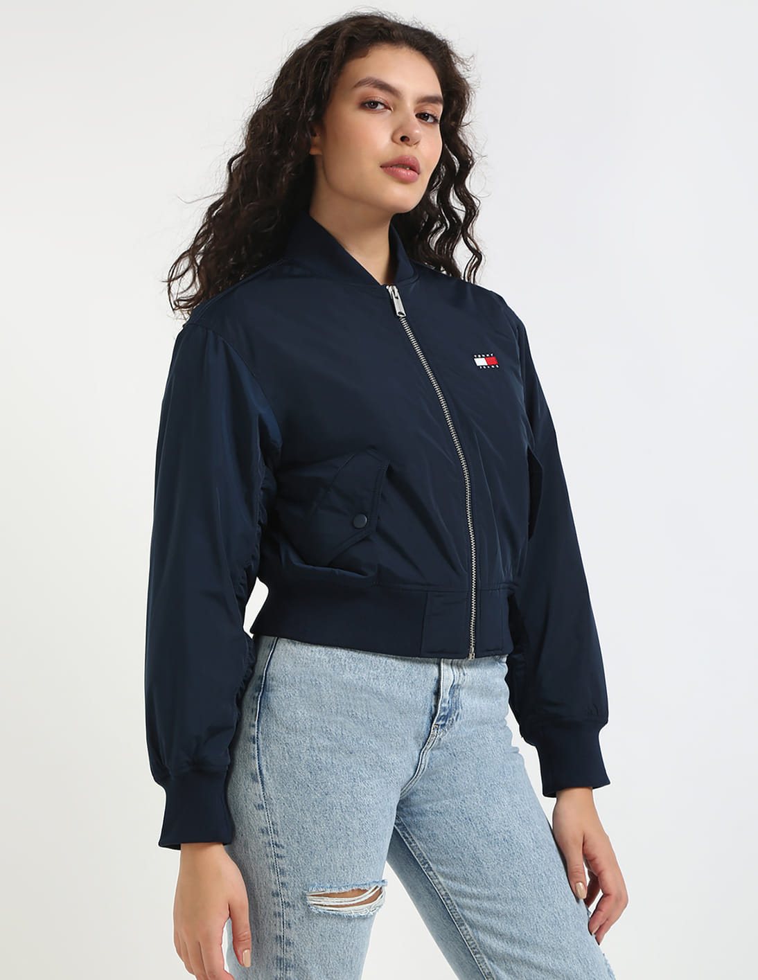 Regular Fit Polyester Band Collar Bomber Jacket