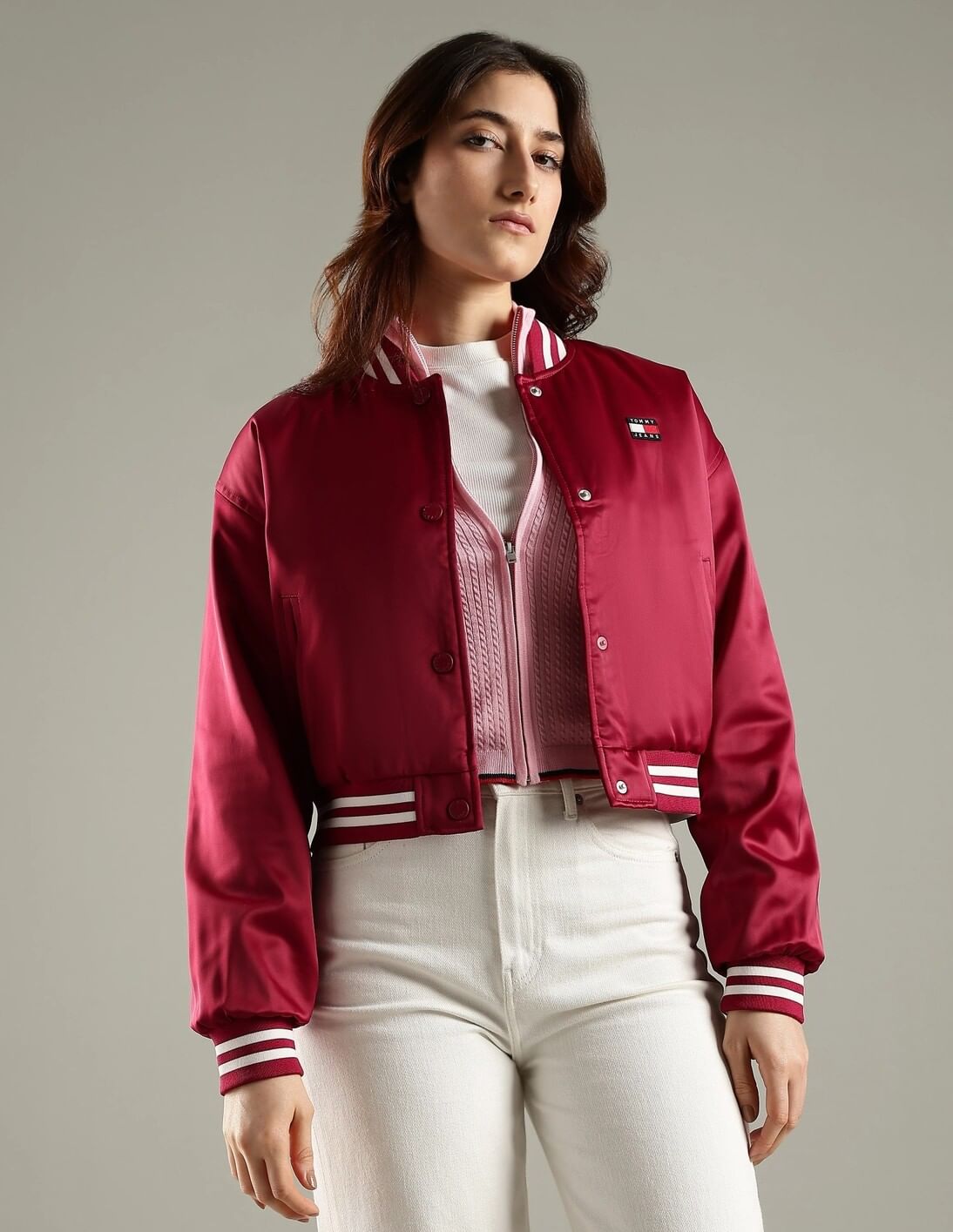 Regular Fit Polyester Baseball Collar Bomber Jacket