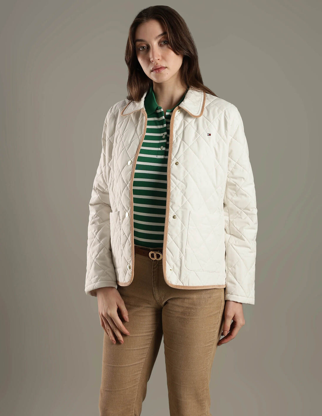 Regular Fit Polyester Spread Collar Quilted Jacket