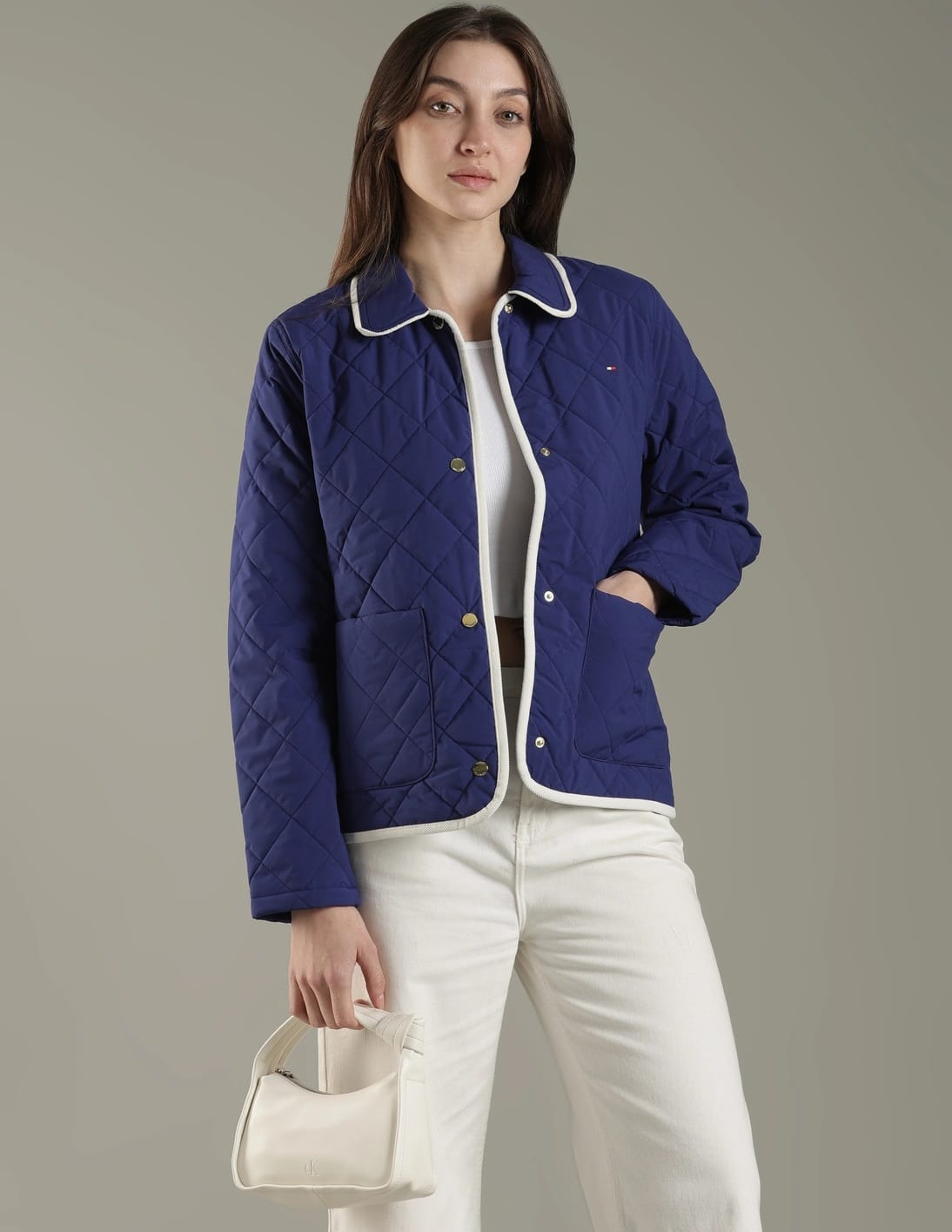 Regular Fit Polyester Spread Collar Quilted Jacket