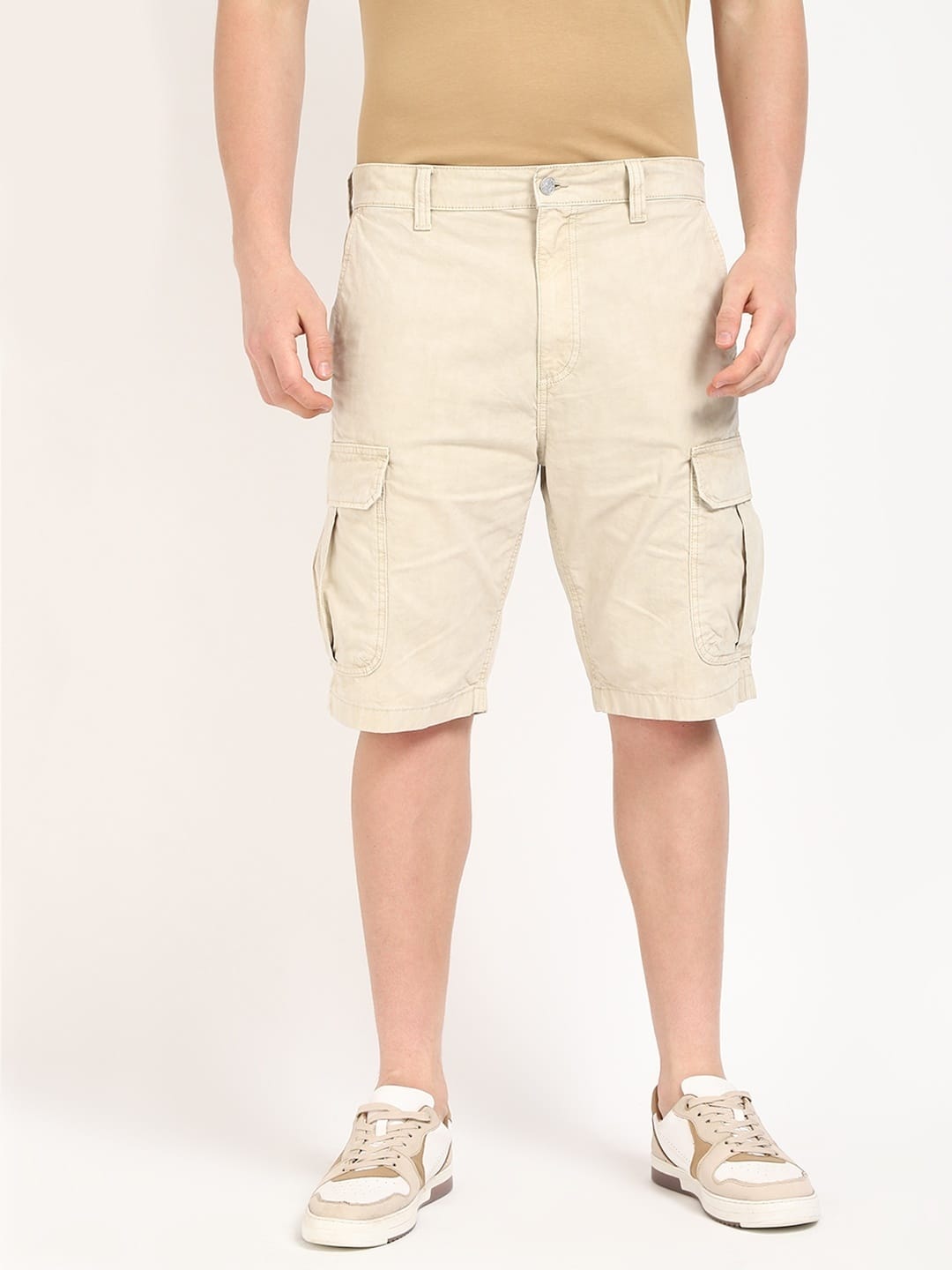 Regular Fit Solid Mid Rise Cargos