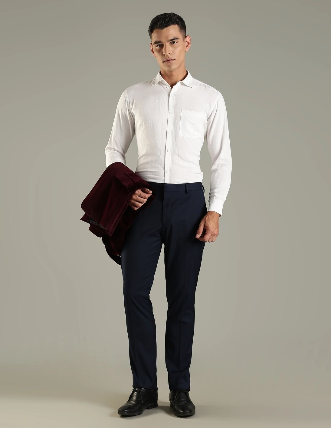 Regular Fit Solid Mid Rise Trouser