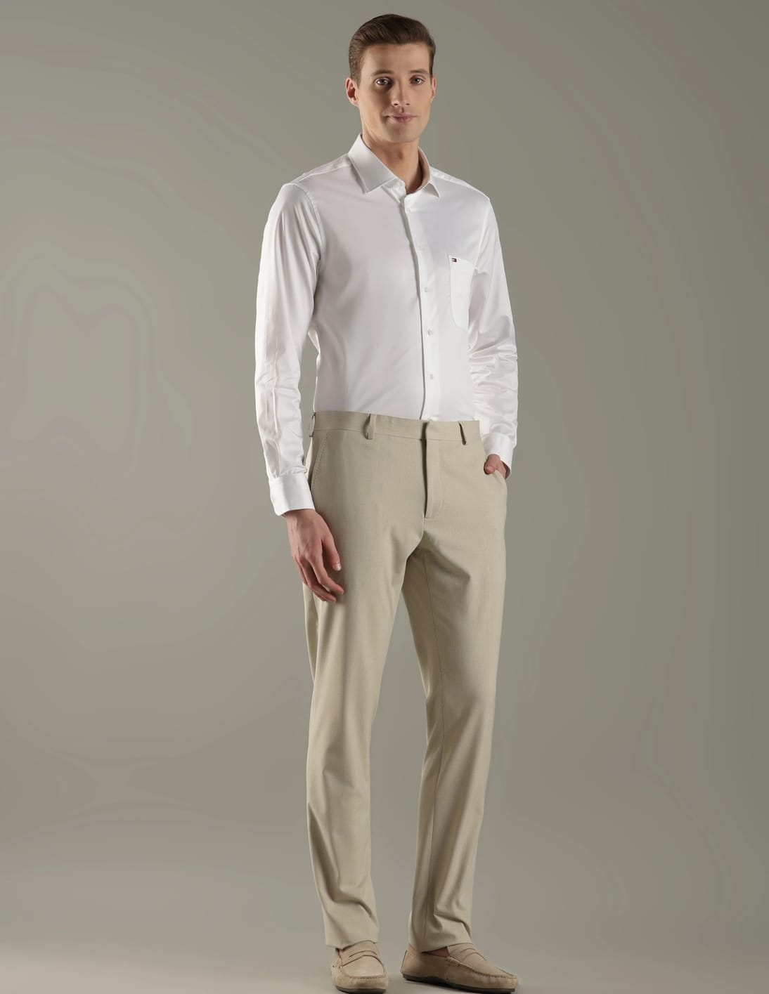 Regular Fit Solid Mid Rise Trouser
