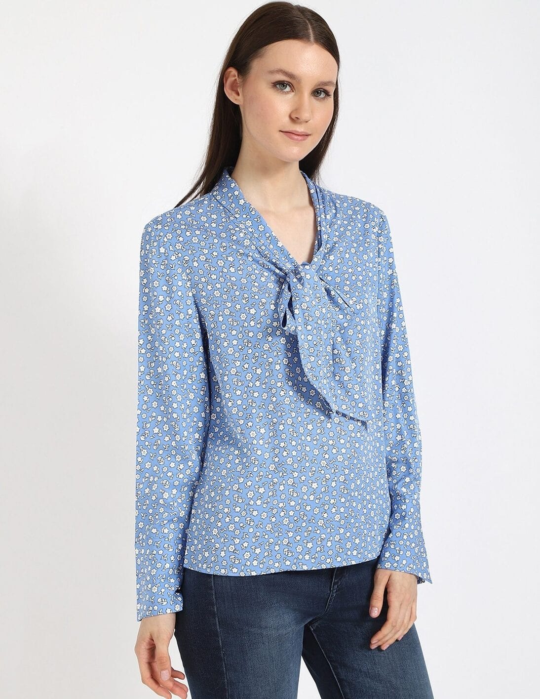Relaxed-Fit Viscose Pussy-Bow Neck Regular Top