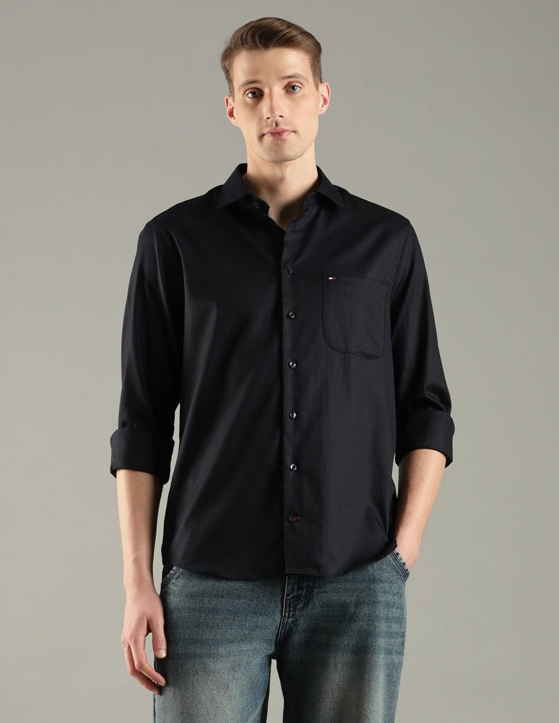 Self-Design Regular Fit Cotton Shirt