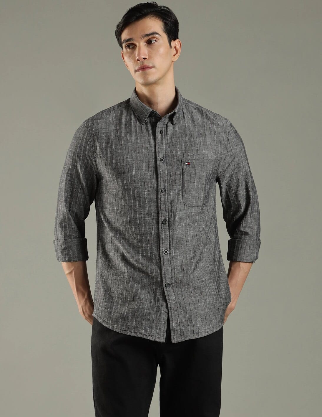 Self-Design Regular Fit Cotton Shirt