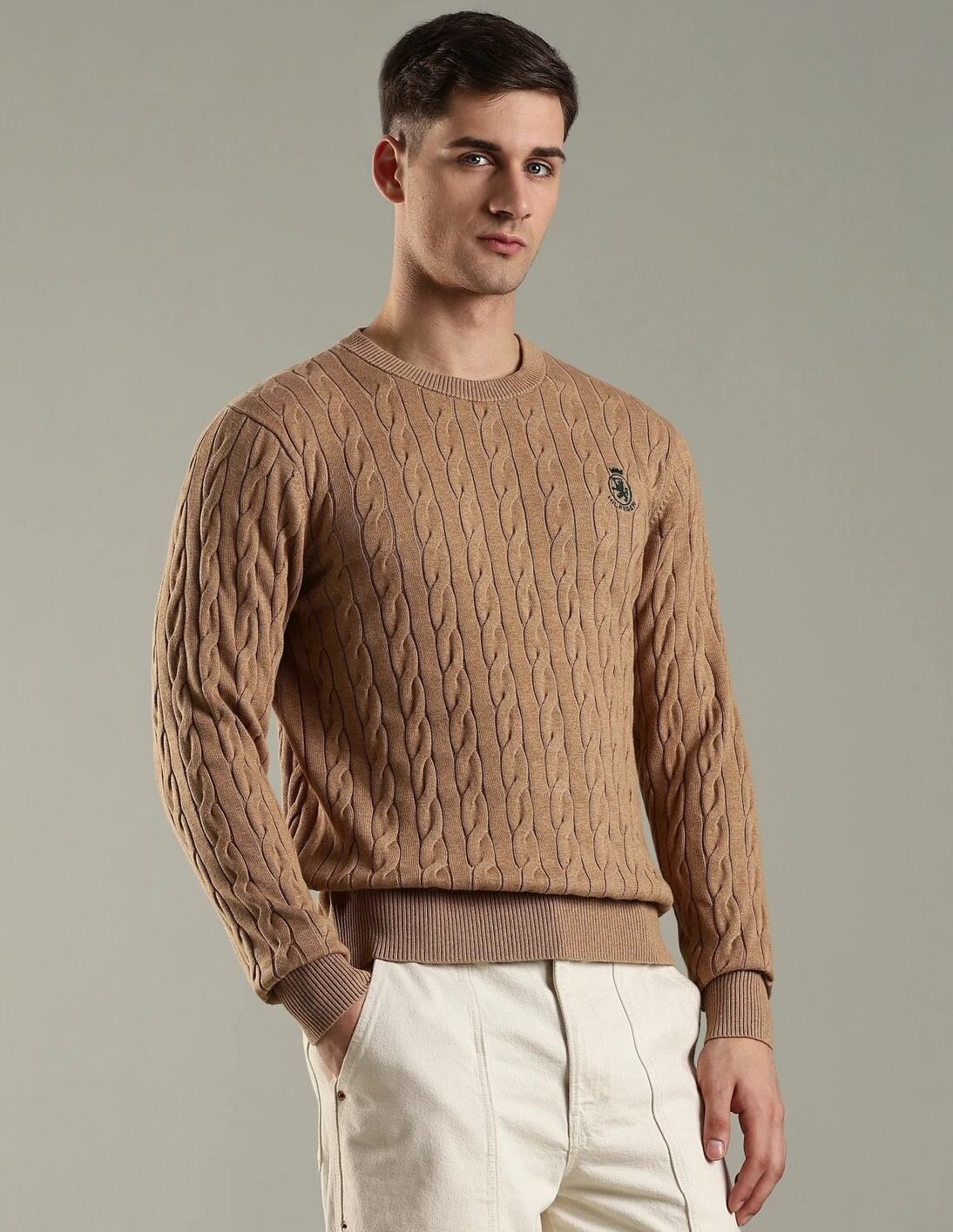 Self-Design Regular Fit Cotton Sweater