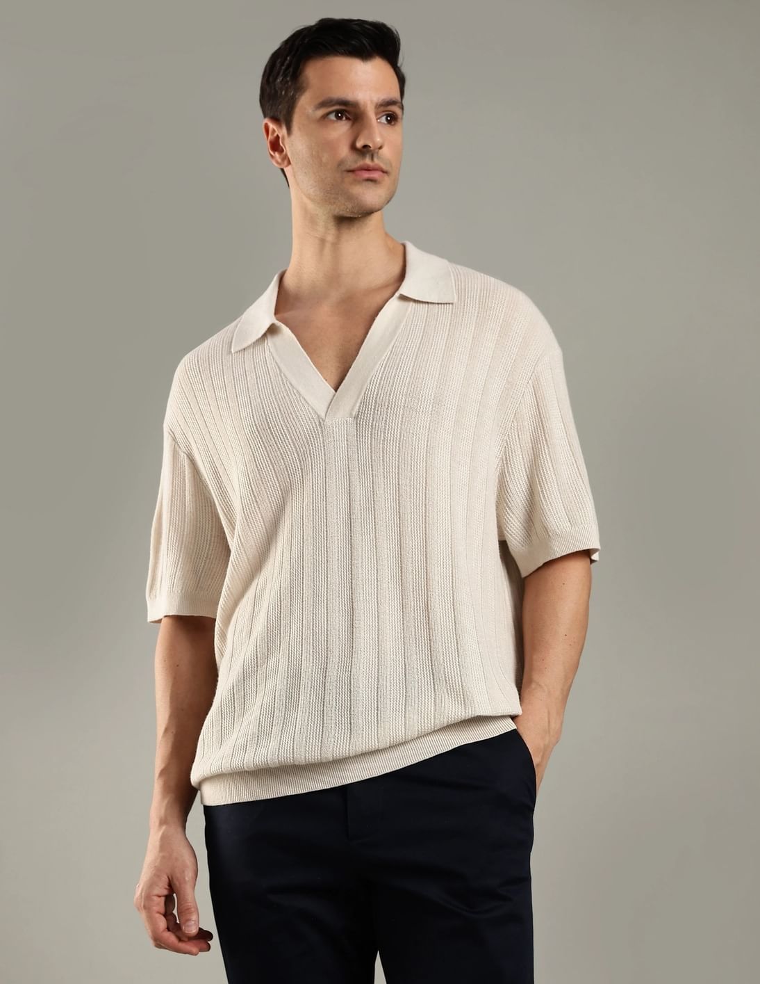 Self-Design Relaxed Fit Wool Polo T-Shirt