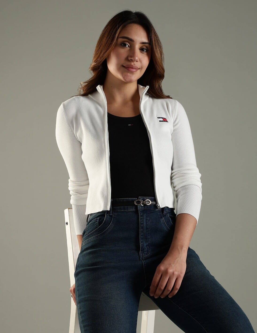Slim Fit Cotton Mock Neck Front-Open Sweater