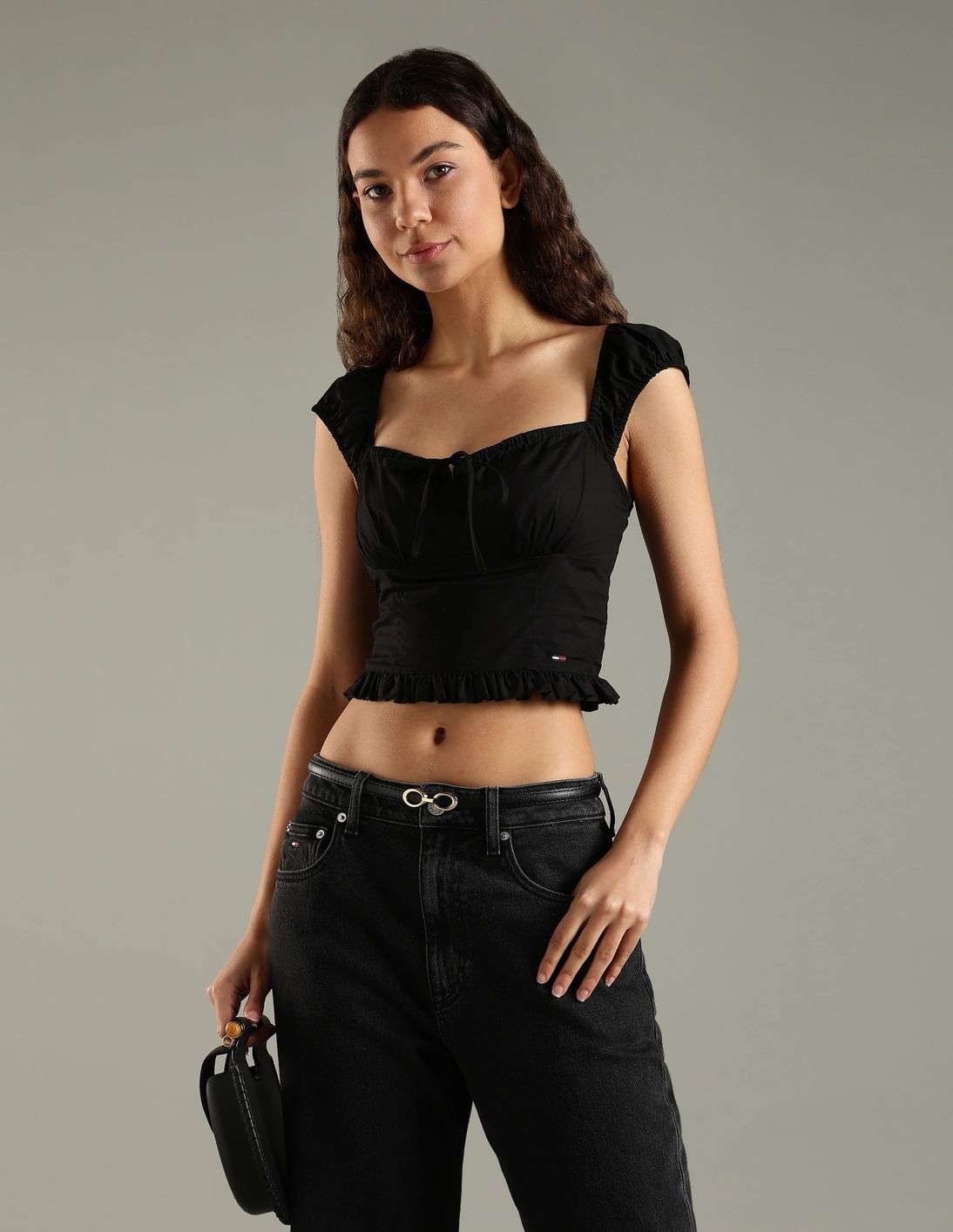 Slim Fit Cotton Sweetheart Neck Crop Top