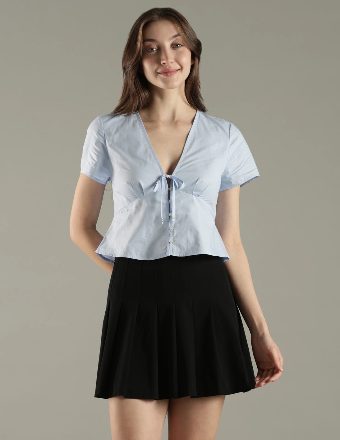 Slim Fit Cotton V-Neck Peplum Top