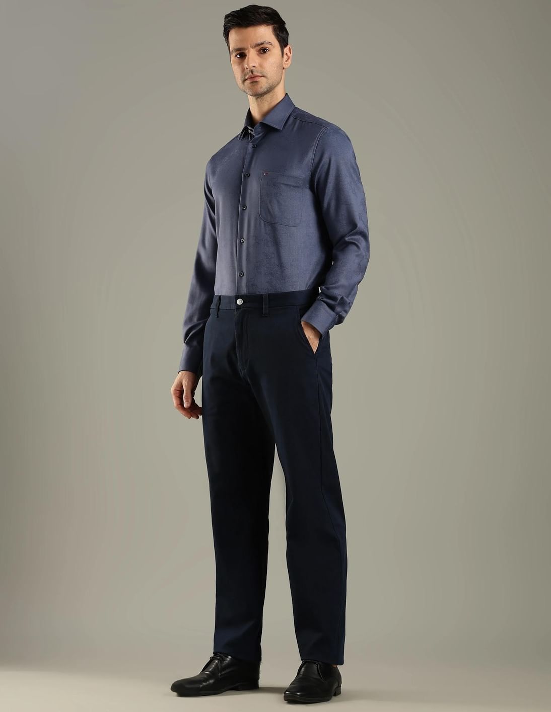 Slim Fit Solid Mid Rise Trouser