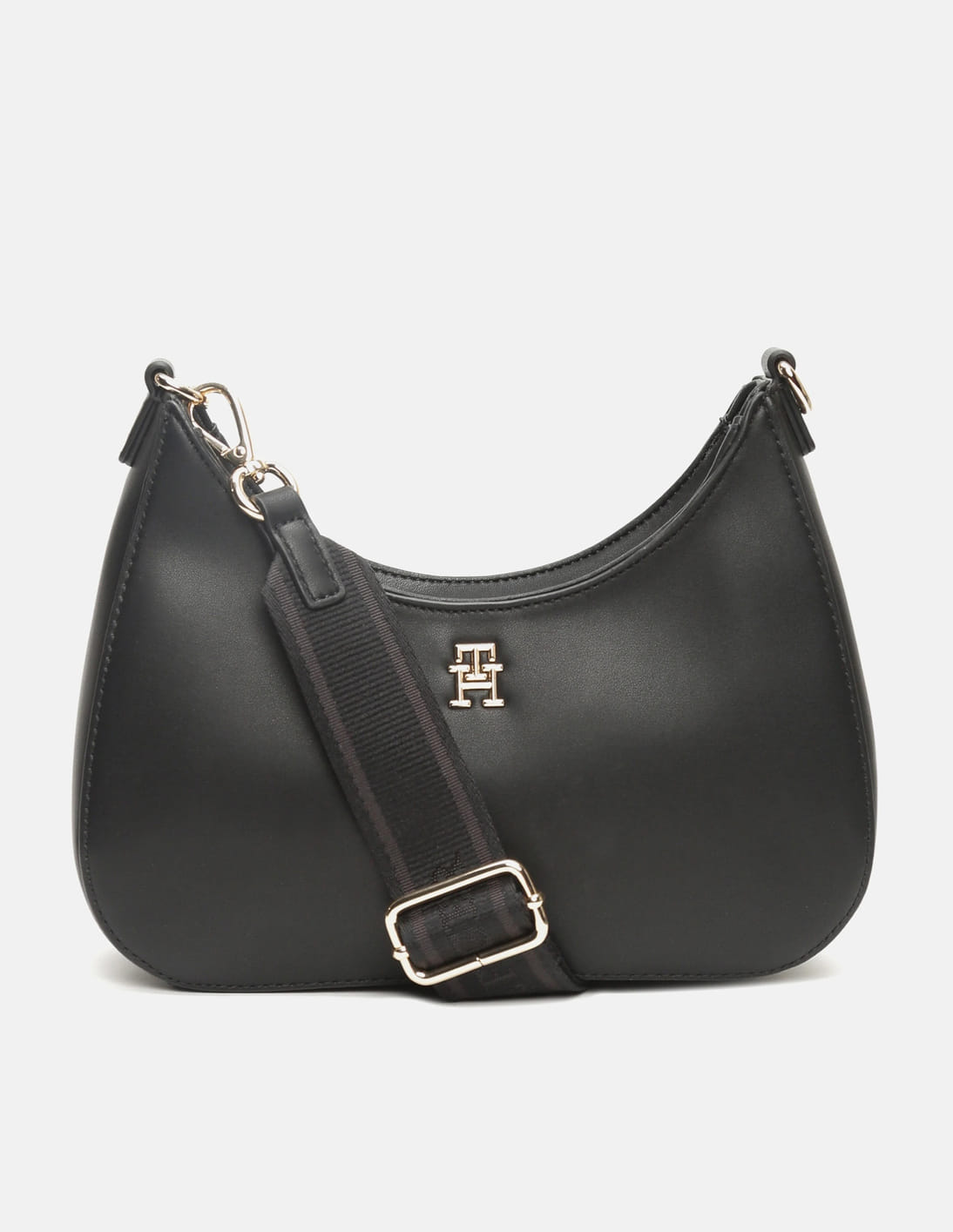 Solid Black Polyurethane Sling Bag