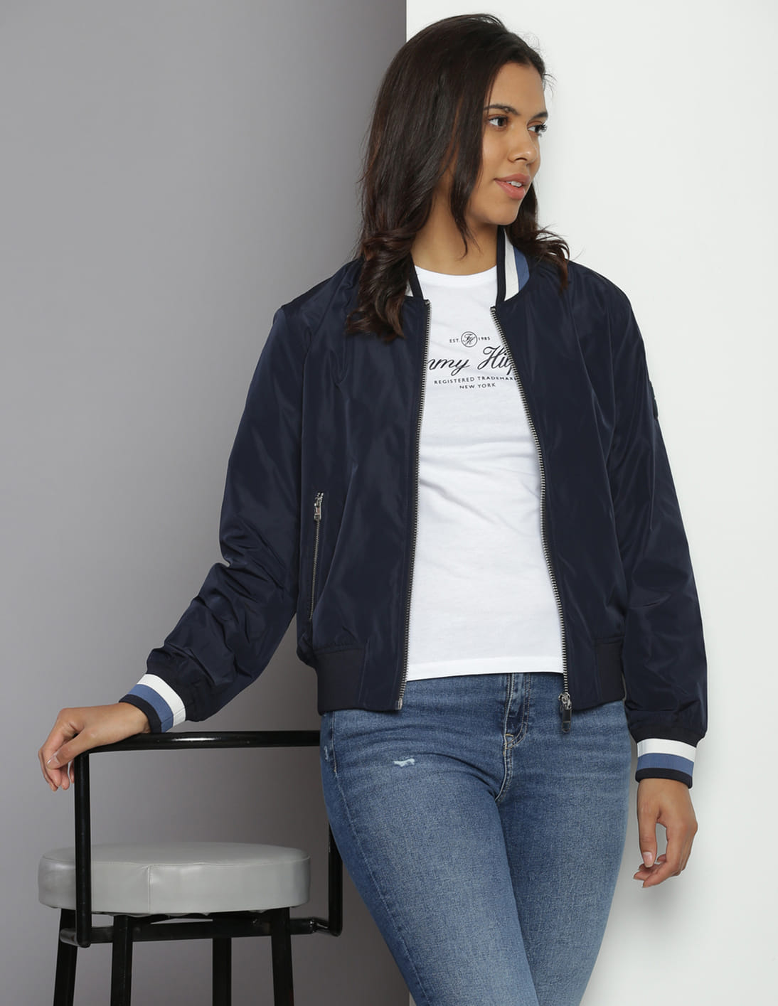 Striped Collar Bomber Jacket