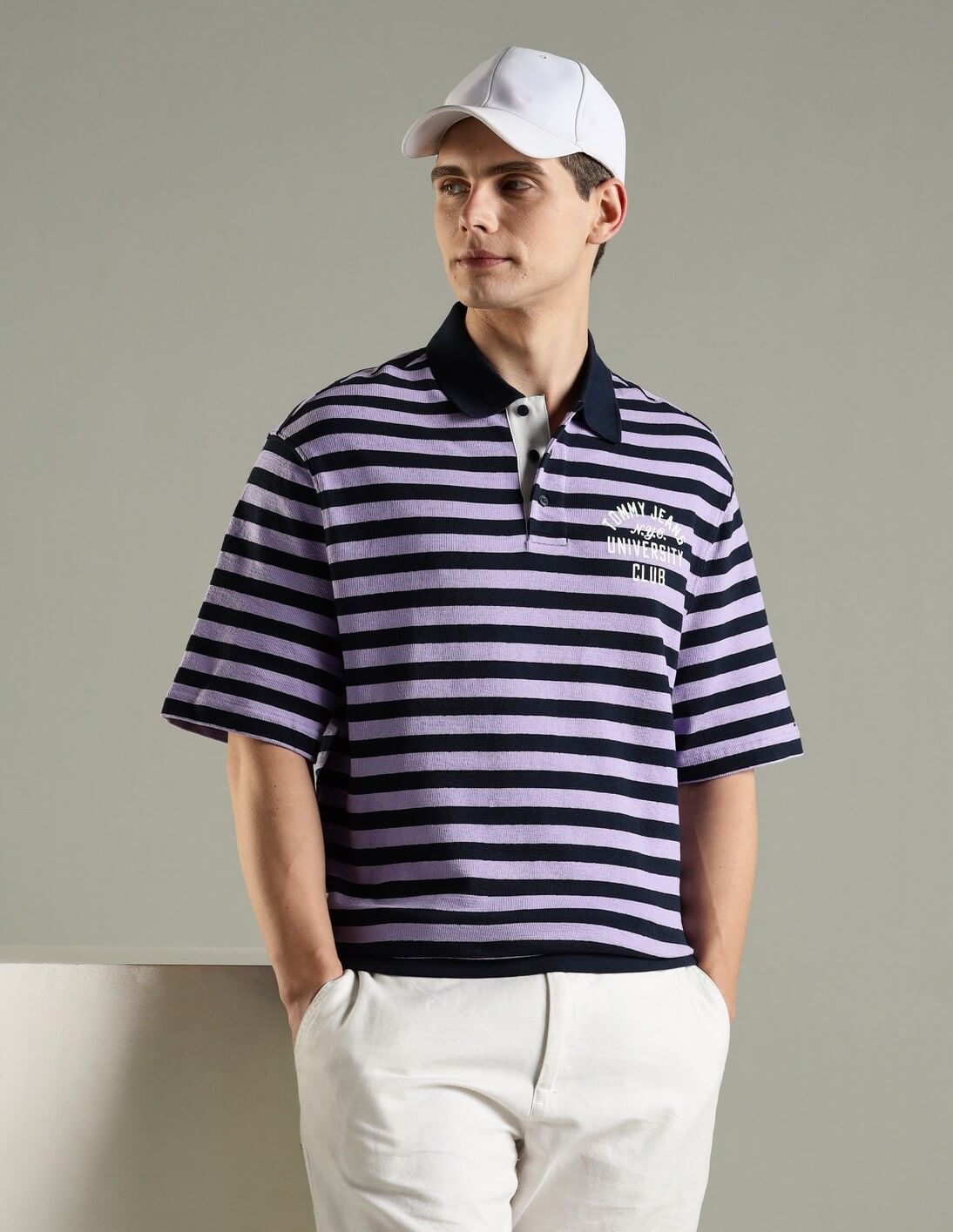 Striped Relaxed Fit Cotton Polo T-Shirt