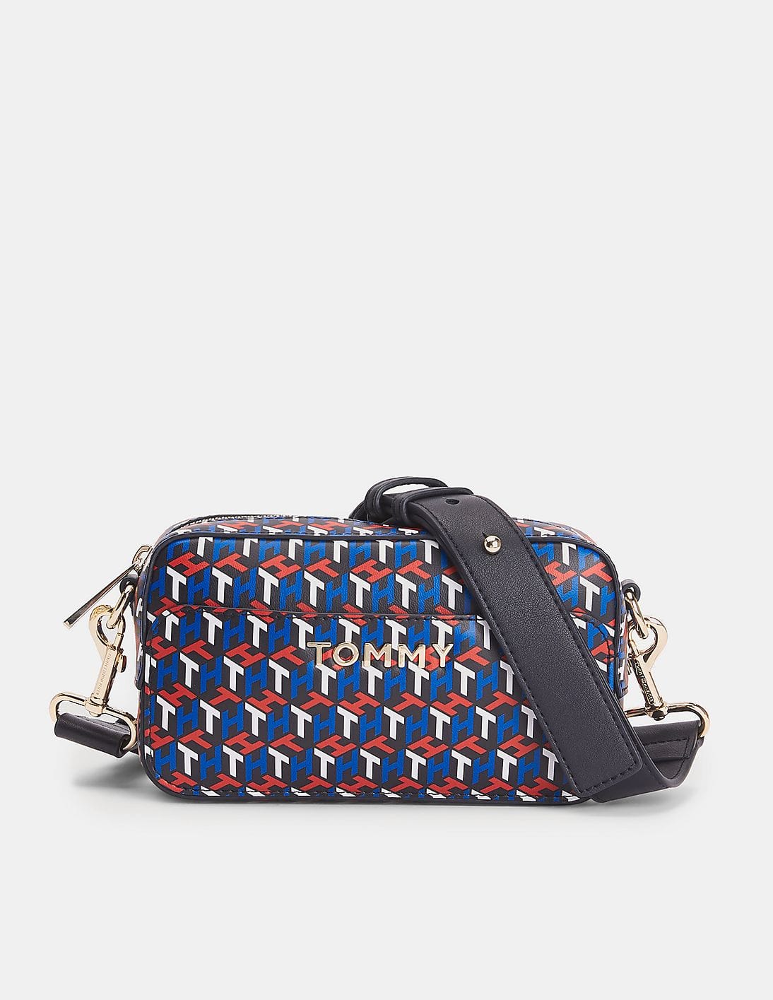Women Red And Blue Monogram Print Sling Bag