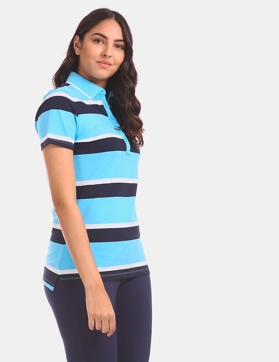 Women Blue Heritage Snap 3 Colour Striped Polo Shirt