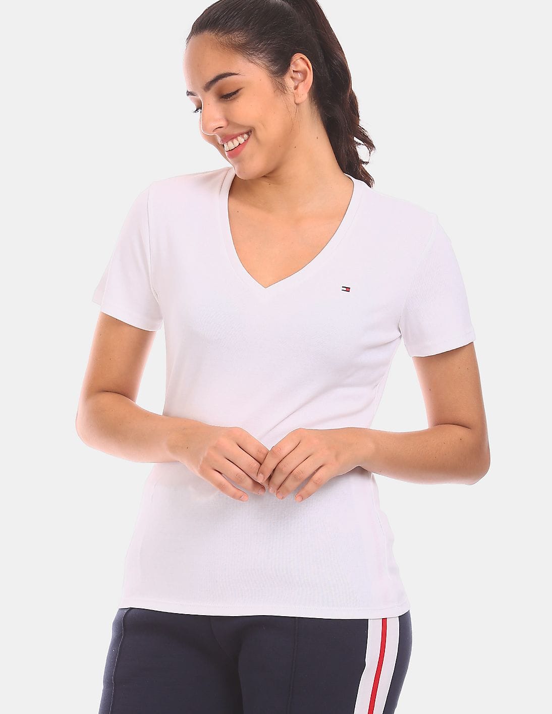 Women White Slim Fit V-Neck Organic Cotton Jersey T-Shirt