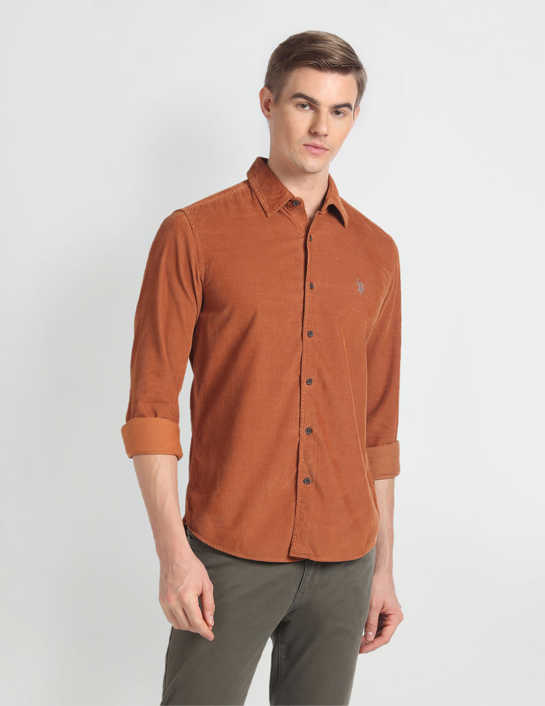 Solid Slim Fit Corduroy Shirt