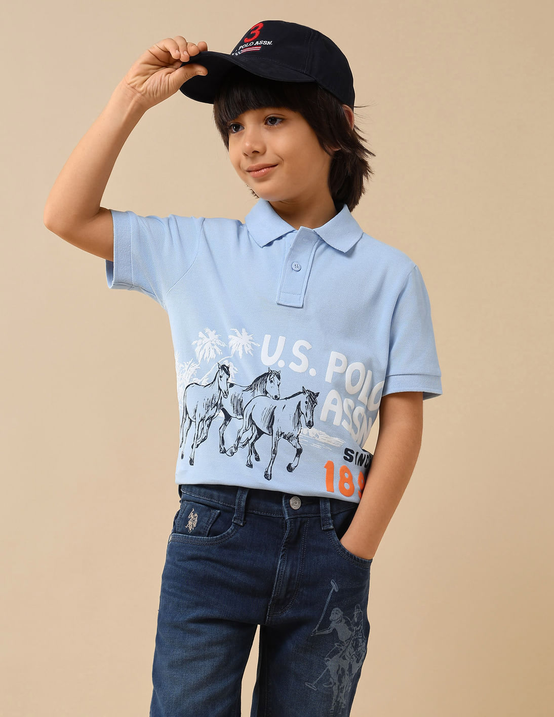 Boys Graphic Brand Printed Regular Fit Polo Shirt